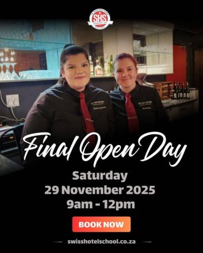 The Swiss Hotel School South Africa’s final open day for the year is on 29 November from 9am to 12pm.
