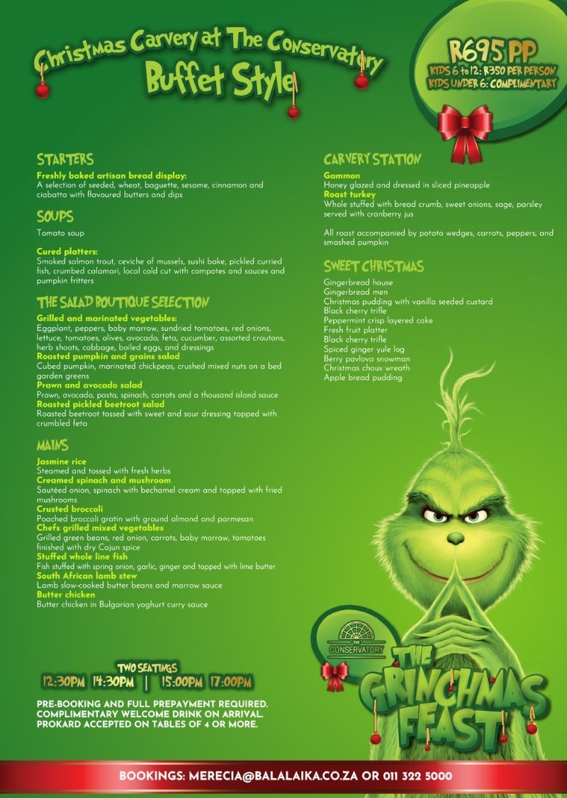 Bring your friends, your family, and your holiday appetite — because this year, not even the Grinch can stop the Christmas cheer at The Conservatory!