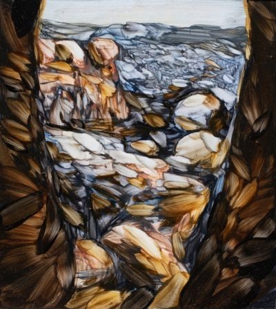 Fourie’s paintings function as emotional landscapes, where curious creatures peer through foliage or rocky apertures, meeting the viewer’s gaze with a quiet question. With sensitivity and wit, she reflects on what it means to be a “primate” in an increasingly artificial world — still wild at heart, but unsure how to belong in the wild.