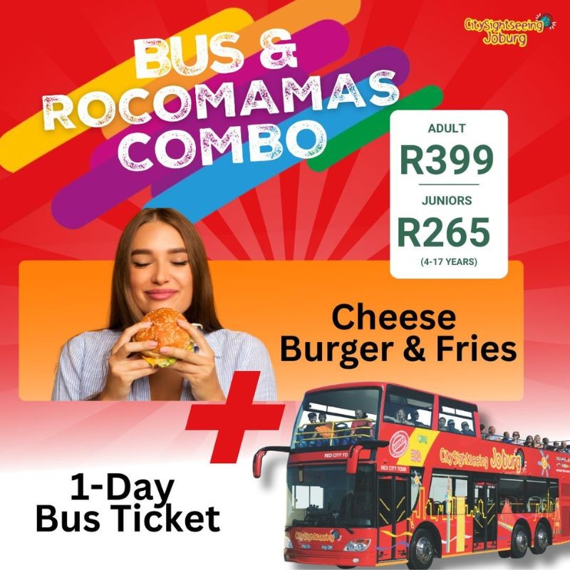 City Sightseeing offers a fantastic package for those looking to explore Johannesburg and indulge in a delicious meal! For just R399, you can enjoy a 1-day Hop-on Hop-off RedBus ticket combined with a tasty burger. This deal is perfect for travellers who want to experience the city's highlights while savouring a satisfying meal either before or after their tour.