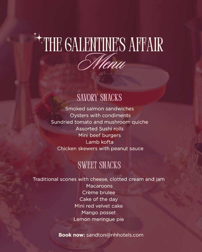 Book on the website: https://world.nh-hotels.com/en/nh-johannesburg-sandton/offers/galentines-high-tea